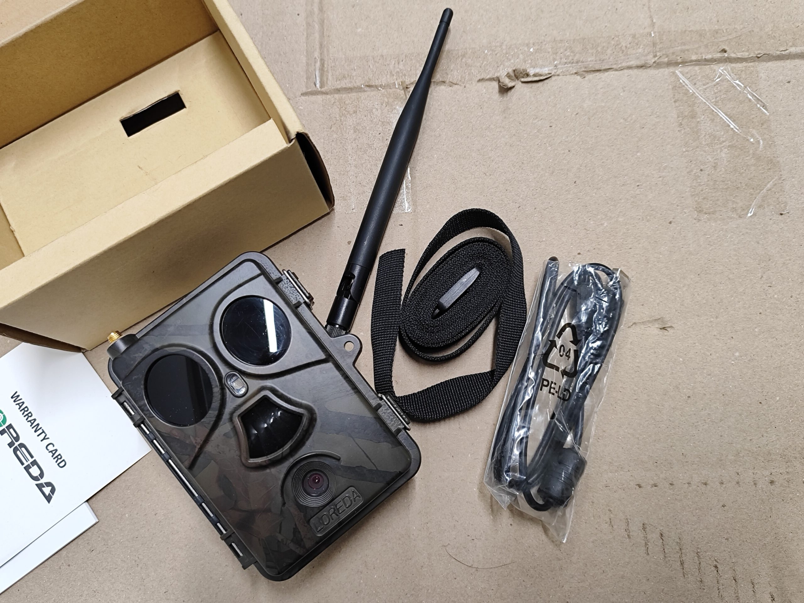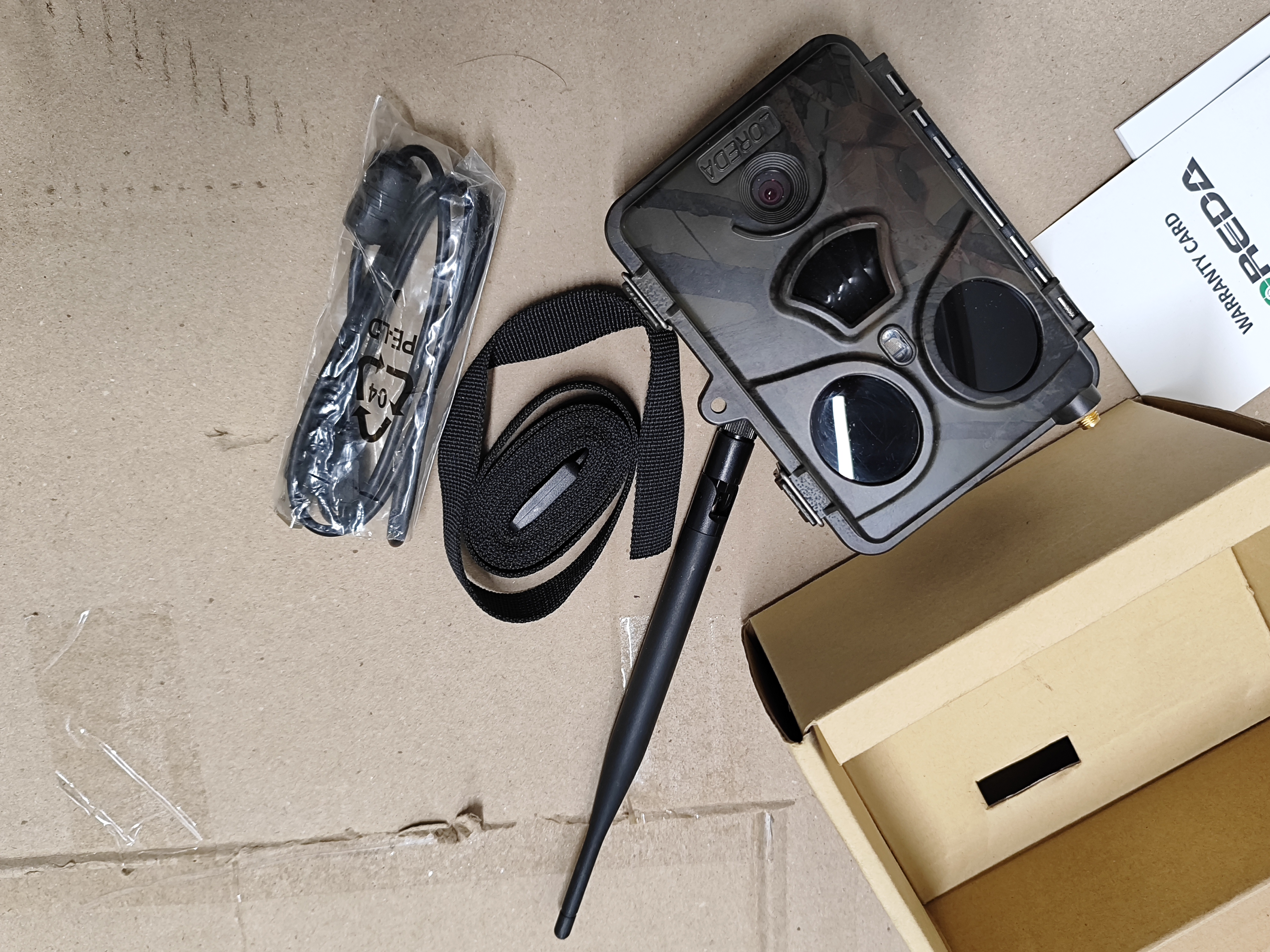 W zestawie: Kamerka, pasek montażowy, instrukcja obsługi, płyta CD, oryginalne opakowanie, antena